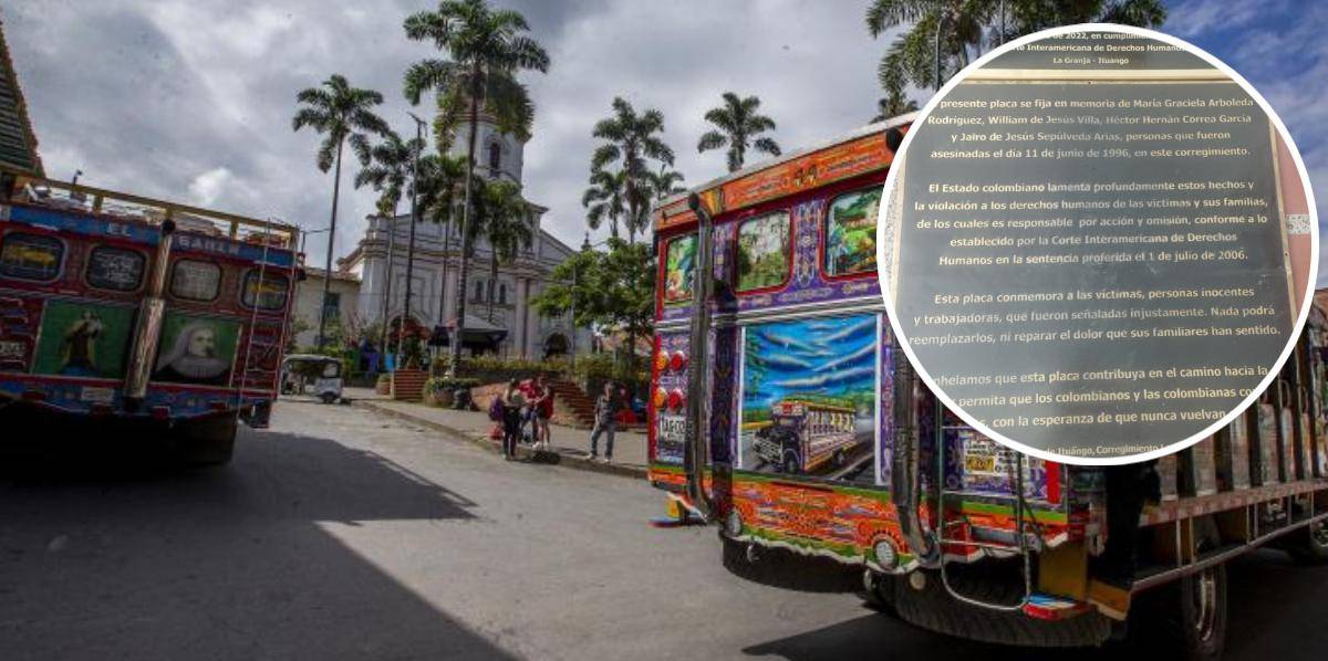 Esta placa se instaló en cumplimiento a la sentencia de la Corte Interamericana de Derechos Humanos, en memoria a cuatro de las víctimas de la masacre, identificadas como: María Graciela Arboleda Rodríguez, William de Jesús Villa, Héctor Hernán Correa García y Jairo de Jesús Sepúlveda Arias.