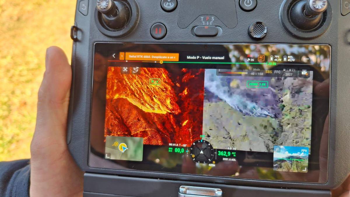 Así monitorean, con drones, los focos del incendio en el Cerro Quitasol al Norte del Valle de Aburrá. FOTO: Cortesía Alcaldía de Bello