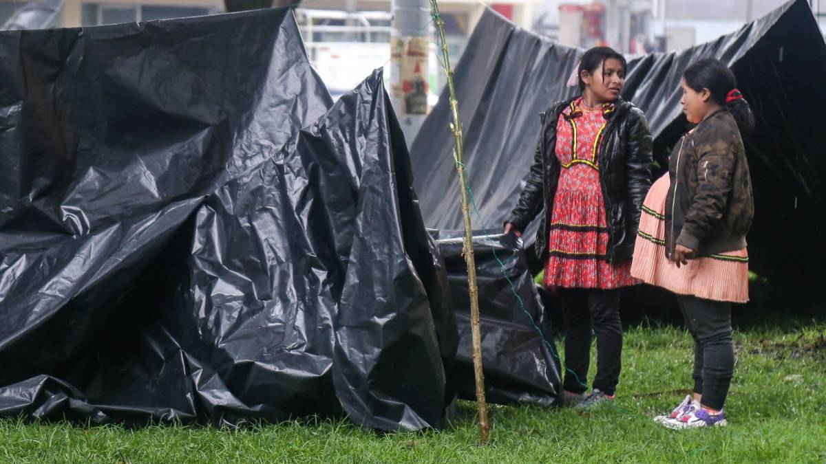 Bogotá. Mayo 19 de 2025. Integrantes de la comunidad indígena Emberá, en su mayoría provenientes de la Unidad de Protección Integral (UPI) La Rioja, se trasladaron nuevamente al Parque Nacional, exigen un diálogo con el Gobierno Nacional . (Colprensa - Catalina Olaya)