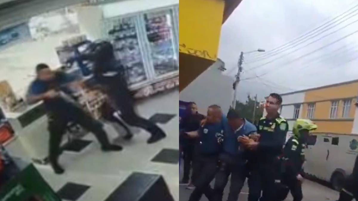 La Policía Metropolitana de Bogotá informó que “los hechos acontecen en un establecimiento de comercio donde dos delincuentes ingresan y, mediante la modalidad de atraco, intimidan a dos guardas pertenecientes a una empresa de valores, portando una maleta”.