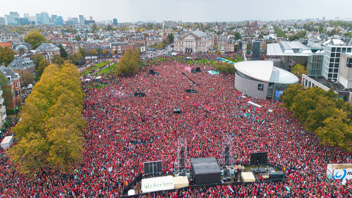 Decenas de miles de personas se movilizaron el domingo en Amsterdam para pedir el fin de la guerra en Gaza, vestidos de rojo y gritando en las calles “Liberen a Palestina”. En París, por su parte, miles se manifestaron por la liberación de los rehenes.