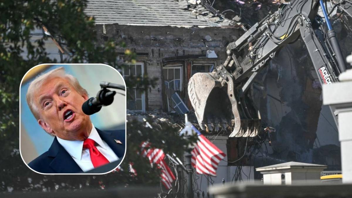 Sobre su nuevo salón de baile, el mandatario aseguró que será financiado con fondos de donantes privados. De hecho, una excavadora mecánica ya comenzó a arrasar la fachada del Ala Este de la Casa Oval, dejando al descubierto un amasijo de mampostería rota, escombros y cables de acero.