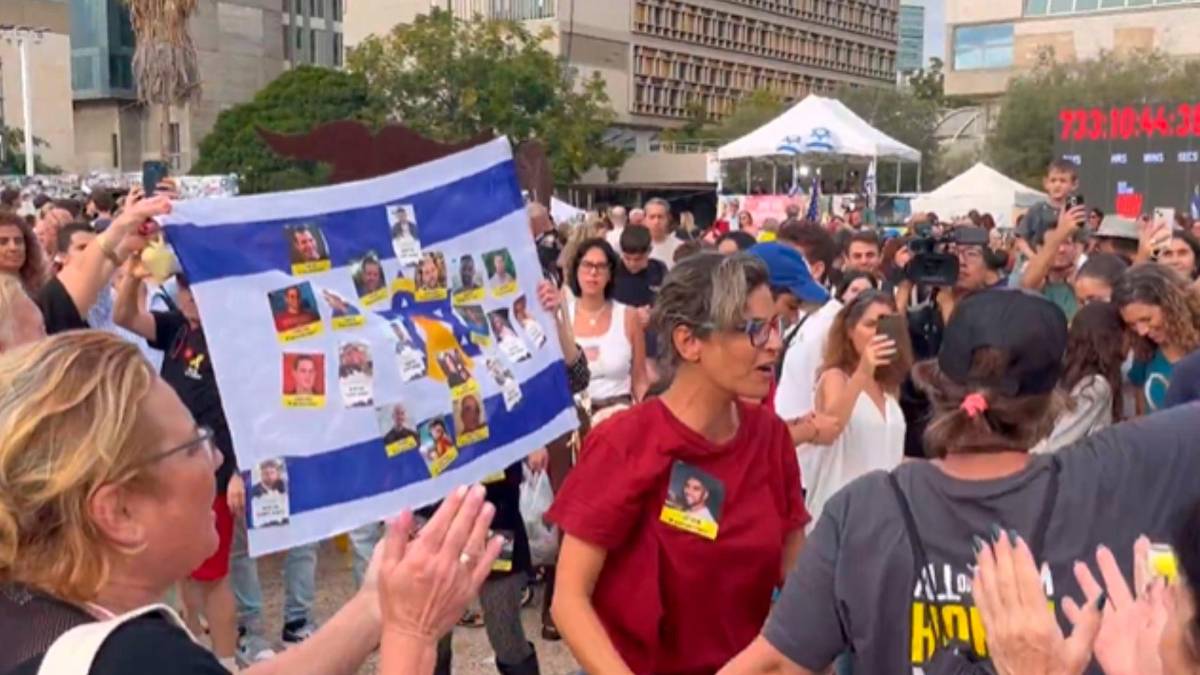 Cientos de personas se congregaron en “La Plaza de los rehenes” en Tel Aviv a celebrar el anuncio del cese el fuego y la liberación de rehenes en medio del conflicto entre Israel y Hamás. FOTO: Captura de video