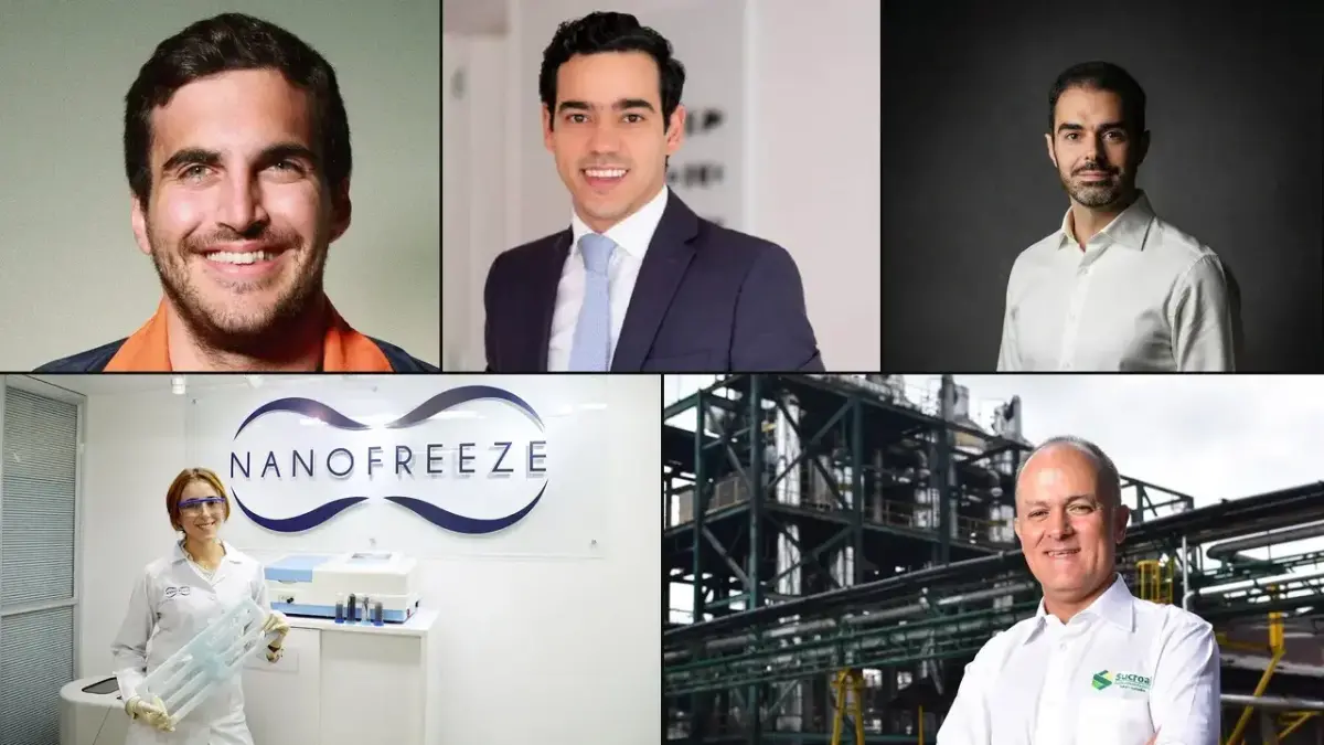 • Imagen arriba: José Gedeón, cofundador de Cobre; Luis Alberto Rodríguez, fundador de Dapper; y Santiago Suárez, cofundador de Addi. Imagen abajo: Isabel Pulido, fundadora de NanoFreeze y Mauricio Velásquez, presidente de Sucroal. Foto: Forbes Colombia.