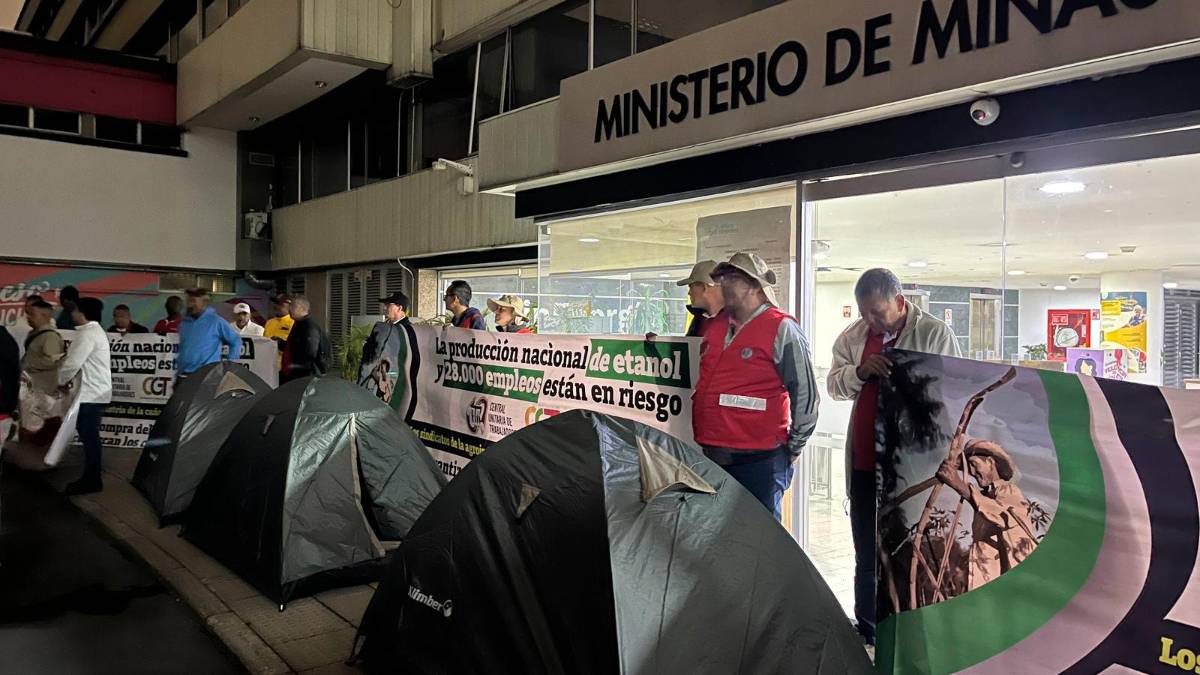 En la mañana de este 18 de febrero, alrededor de 200 personas madrugaron a protestar al Ministerio de Minas y Energía en Bogotá. Se trata de integrantes de las centrales obreras CGT, CTC y CUT y que pertenecen al sector cañero, panelero y palmero provenientes del Valle del Cauca, Cauca y Risaralda.